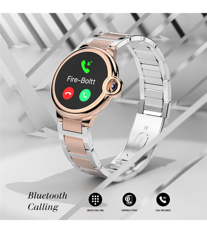 Fire Boltt Topaz SS BSW151 BT Calling Smart Watch Introducing Fire-Boltt Topaz, the epitome of sophistication and innovation. Crafted with precision and elegance, Topaz comes with a 33mm (1.3"") HD display, BT calling, SpO2 monitoring, multiple watch faces, heart rate & sleep monitoring & much more. Product Details